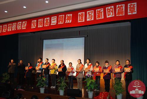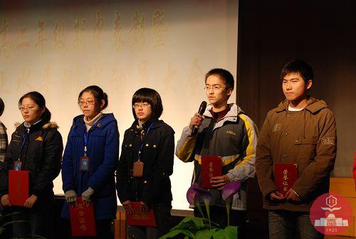 随后,大会进行了两项表彰。一是对五星级学生、四星级学生、突出进步奖学生的表彰。二是对学习标兵的表彰。“天道酬勤,付出总有回报,用勤奋和拼搏武装自己,时刻准备去创造人生中的辉煌!”、“学习是灯,努力是油,油要一点一点的积累才能使灯常亮”、“在快乐中学习,在学习中享受快乐,不要过多的幻想未来,最重要的是把握好现在。”……学习标兵们发表的获奖感言道出了他们的壮志豪情。