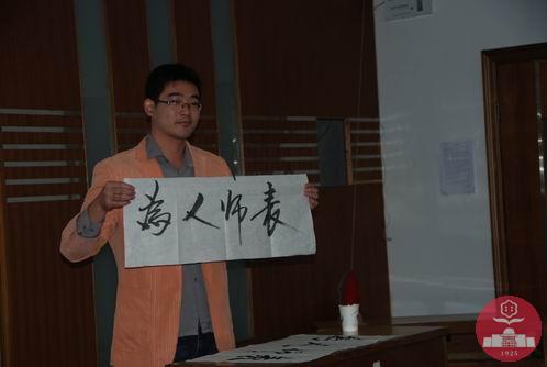 首先,主持人柏晓峰老师宣读比赛规则和比赛流程:本次论坛先由参赛教师做一个30秒钟的自我介绍,然后选手作主题演讲、才艺展示和情境答辩,答辩问题由评委老师即兴提出,最后评委根据各个选手的表现为其打分。
