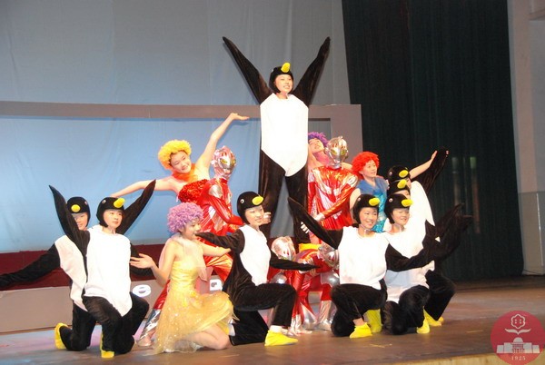 这次比赛采用当场亮分制,共有23个代表队参赛,规模空前,竞争激烈。我校参赛舞蹈名为《QQ一族》,由16名学生化身企鹅、摩登女郎以及机器人,用富有创意的舞蹈,惟妙惟肖地将网络上的卡通形象表现出来。扮演小企鹅的8名女生,身着黑白相间的企鹅服,演绎着具有活泼动感的舞姿,而4名摩登女郎由身材高挑的女生,戴着五彩的假发,身着亮丽的短裙装激情演绎,另外4名男生则扮演身材伟岸的机器人,他们以刚劲有力的舞姿,配合着震动的机械运转声,展示着卡通机器人的无穷魅力,让观众仿佛畅游在网络世界中。最终我校表演的舞蹈荣获大赛二等奖。(音乐组)