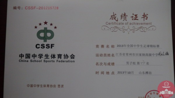 为期十天的2013年全国中学生足球锦标赛已于日前在山东潍坊落下了帷幕,在此次比赛中,我校首次代表江苏省参赛,获得了第六名的好成绩。