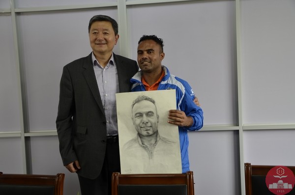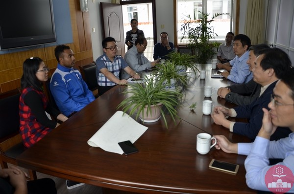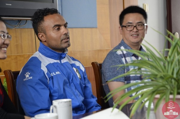 10月18号下午,省侨办杜伟副主任、文宣处朱杰处长,市侨办张哲浩主任、汤建忠副主任,在市教育局体卫艺处甘亦农处长、陆绯岱副处长及我校陈文伟校长的陪同下,来到我校看望巴西足球教练Kleber。
