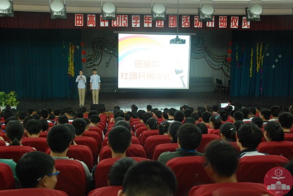 9月19日上午10时,田高中高一新生齐聚在信息楼四楼报告厅,沉浸在欢乐和兴奋气氛中,等待着即将开始的社团活动开班仪式。