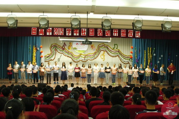 多年来,田高中一直坚持以养成阳光大气的田中品格、培养相互协作本领为宗旨,开展丰富多彩的社团活动。此次活动综合艺术表演、科技思维、人文实践等多个种类共25个趣味社团,内容更是夺人眼球、精彩纷呈。仪式伊始,主持人向大家介绍了具有田高中特色、人气指数极高并在常州乃至全国颇具影响力的品牌社团——活力四射的“9095”舞蹈社,动人曼歌的“蒲公英”合唱团,多次获国家、省、市大奖的机器人俱乐部,挑战智商和“球商”的“小小银球”俱乐部,不断演绎奇迹的植物组培社和培养国际视野的模拟联合国社团……简洁有趣的介绍已经赢得学生们欢呼一片!还有蓝天碧水环保社、芳晖苑读书社、硬笔书法社、常州民俗文化研究社、趣味素拓社等令田中沃土充满了诗情画意。小小的社团承载着伟大的梦想,它俨然已经成为田高中一枚亮丽的名片!紧接着,一段田高中社团活动VCR更是紧紧地锁住了全场目光,视频中丰富多彩的社团活动、积极投入的成员身影深深地打动了在场的每一位同学。随后,赵峰主任宣读了社团指导老师名单,俞听放副校长为各位指导老师颁发聘书。最后,汪明副校长发表讲话,他向社团指导老师表达了真诚的谢意,并殷切地期望同学们能珍惜宝贵的学习机会,合作参与,提升能力,积极投入社团活动,让生活更有意义,并预祝社团活动成功开展。