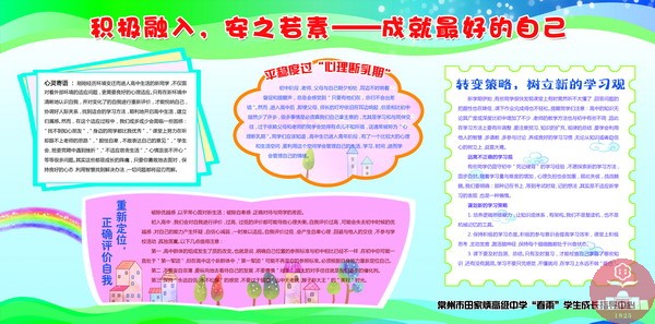 刚刚经历环境变迁而进人高中生活的新同学,不仅面对着外部环境的适应问题,更需要良好的心理适应。只有在新环境中清晰地认识自我,并对变化了的自我进行重新评价,才能悦纳自己,协调好人际关系,找到适合的学习方法,顺利地开启高中生活,建立归属感。然而,在这个适应过程中,我们或多或少会面临一些困惑:“找不到知心朋友”,“身边的同学都比我优秀”,“课堂上努力在听却跟不上老师的思路”,“胆怯自卑,不敢表达自己的意见”,“学生会、班委竞聘中遇到挫折”,“不适应宿舍生活”,“心情沮丧不开心”等等很多问题。其实这些都是成长的阵痛,只要你勇敢地去面对,保持良好的心态,利用智慧找到解决办法,一切问题都将迎刃而解。