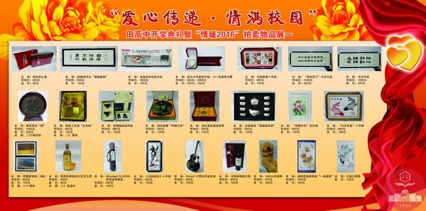 爱是心中的一颗种子,它能茁壮长成一片绿荫,既能美丽自己,更能荫泽他人。2016年2月21日下午2:40,我校第六届“爱心传递•情满校园”拍卖义卖活动又将如期而至,期待各位家长和社会各界爱心人士走进田高中,一起见证这用温情点燃孩子梦想的美好时刻。