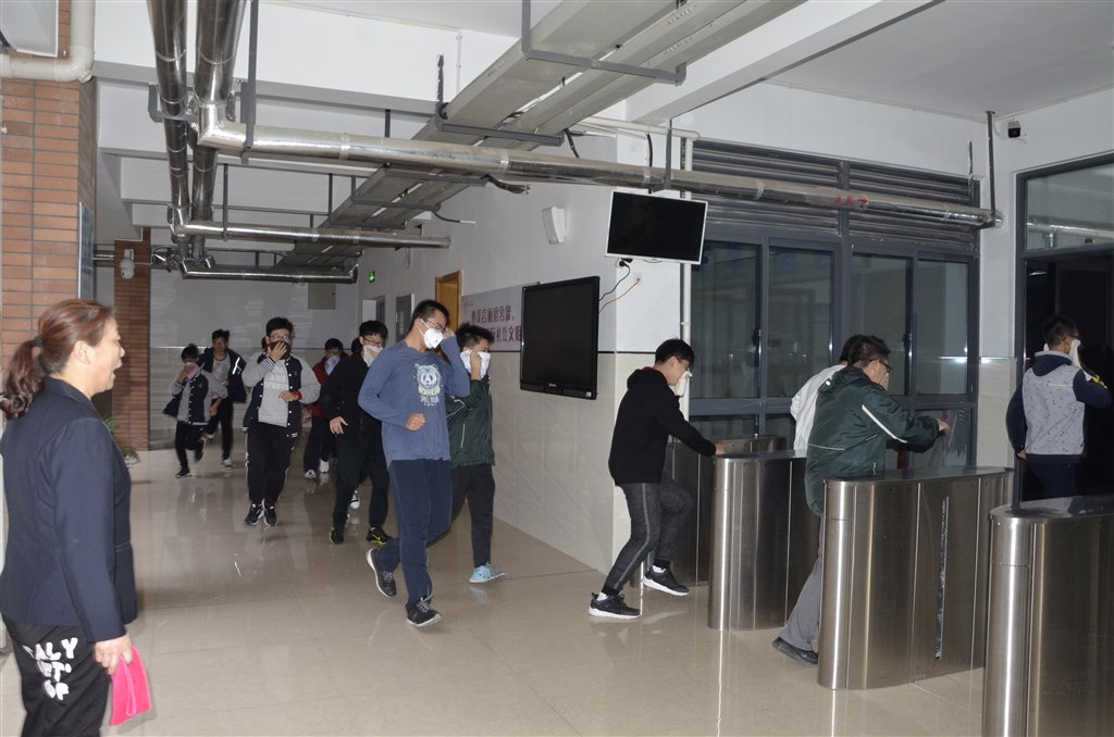 为确保本次演习的成功举行,在校长室指挥下,后勤处、体育组积极参与、配合,德育处结合学校实际,认真细致的制定此次演习活动方案,召开全体班主任和工作人员动员会议,明确职责要求。演习开始前,所有住校生在宿舍内安静等待,所有班主任到各楼层待命,防止疏散过程中出现意外情况,德育处赵军主任广播宣讲有关疏散注意事项,确保演习过程中的安全。4点30分,随着警报的响起,全体住校生沉着冷静、紧张有序,用湿毛巾捂住鼻子,弯着腰迅速成两列对撤离,按照学校制定的紧急事件疏散的方案,本着时间就是生命、纪律就是保障的原则,快速撤离到学校操场的安全地带,随即各班主任清点人数,并逐级向上汇报,演练共用时3分45秒,800多名住校生以最快的速度、最好的秩序圆满地完成了此次紧急疏散的演习任务。
